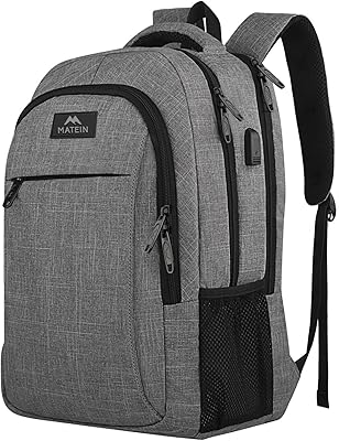 MATEIN Travel Laptop Backpack, Business Anti Theft Slim Sturdy Laptops Backpack with USB Charging Port, Water Resistant College School Computer Bag Gift for Men & Women Fits 15.6 Inch Notebook, Grey