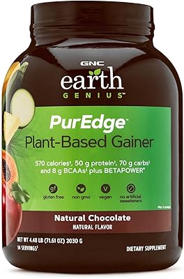 GNC Earth Genius PurEdge Plant-Based Gainer - Natural Chocolate, 14 Servings, 50 Grams of Plant-Based Protein